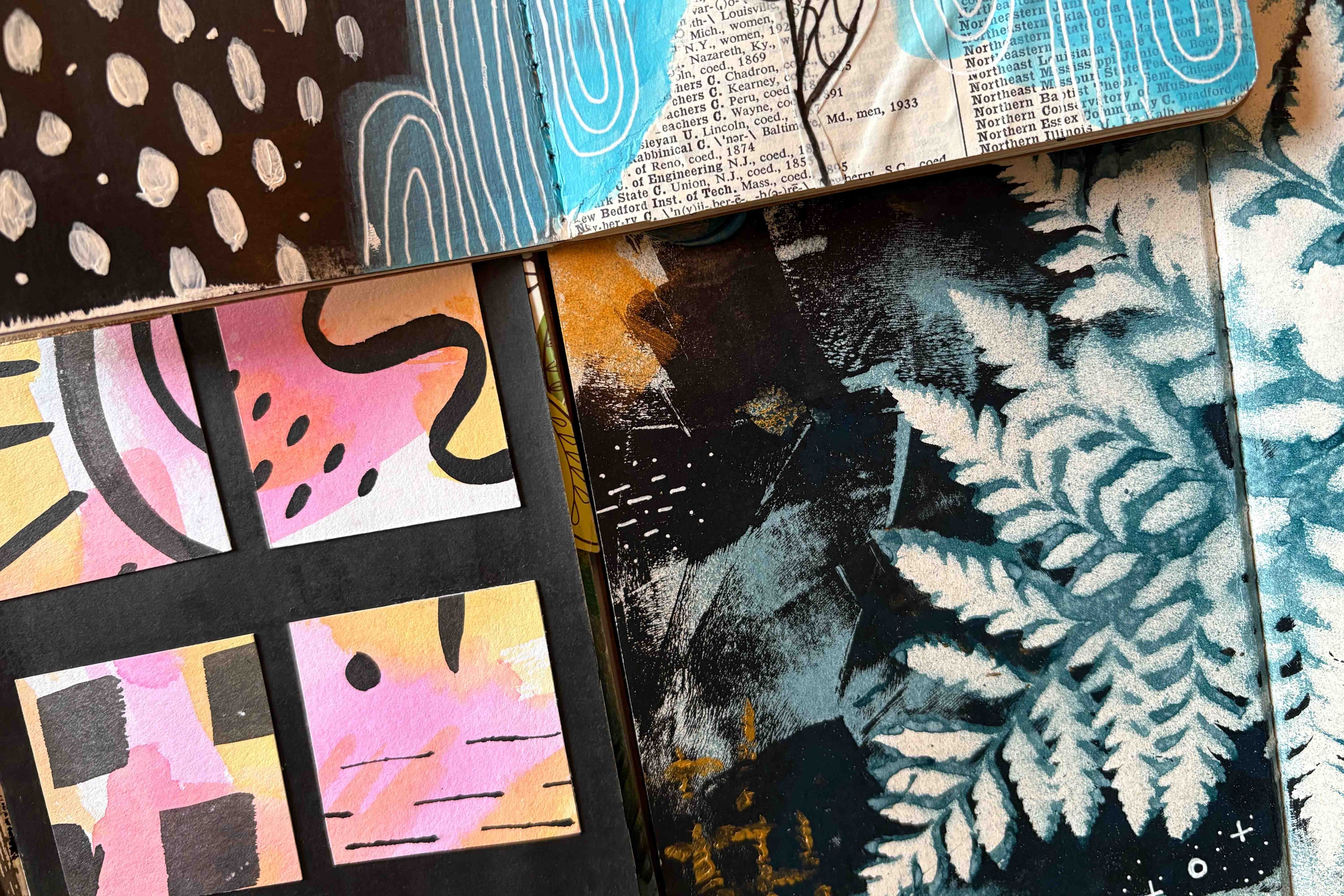 I first discovered art journaling during a season of intentional untangling. At the time, I was in a group coaching program, working to separate my sense of self-worth from my career as a corporate creative. My coach challenged me to create something just for me AND not on a screen. That invitation hit deeper than I expected. I’d grown up crafting and making with my hands, but somewhere along the way, I’d stopped. Picking up paint, glue, and paper again felt strangely vulnerable… and completely freeing.